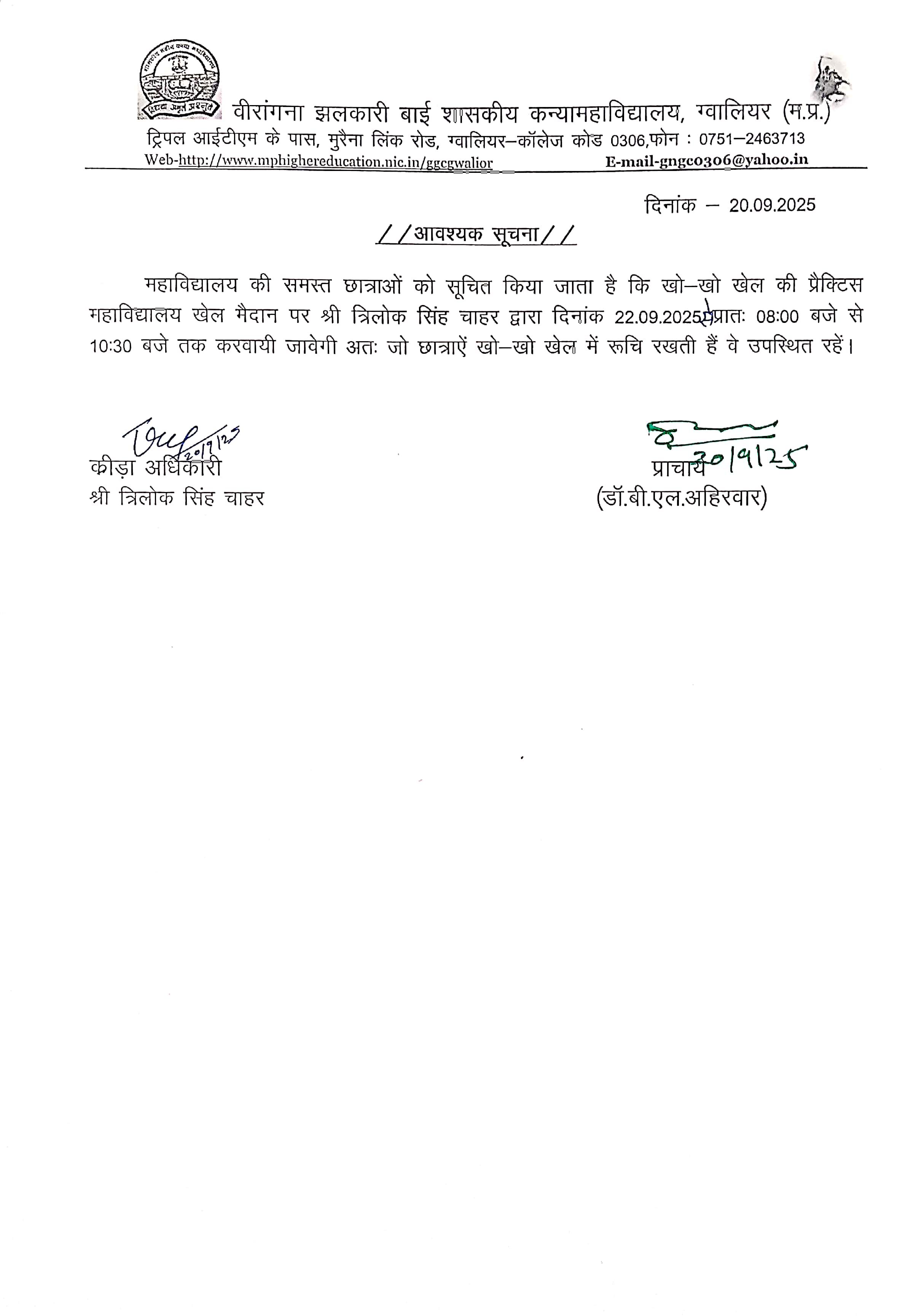 I welcome you all in Veerangana Jhalkari Bai Govt. Girls College, Gwalior. It is a popular Govt. college of gwalior established in year 1983 named as Govt. Naveen Kanya Mahavidyalaya imparting the education at graduate level in Arts. This college later on known as Veerangana Jhalkari Bai Govt. Girls College blossomed as the institute with multidisciplinary subjects i.e. Science, Commerce, Home Science and P.G. in two subjects Hindi and Sociology. It is noteworthy that this is one o...